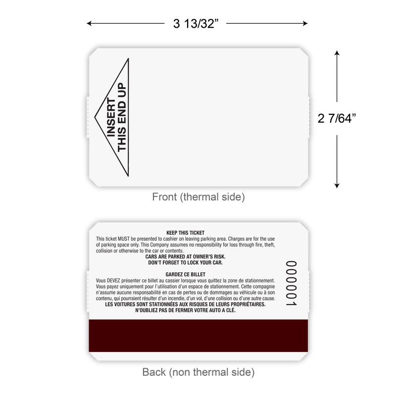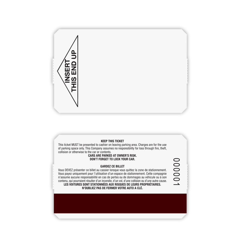 Direct thermal parking tickets designed for Zeag systems, featuring magnetic stripe compatibility for reliable access control and parking management.